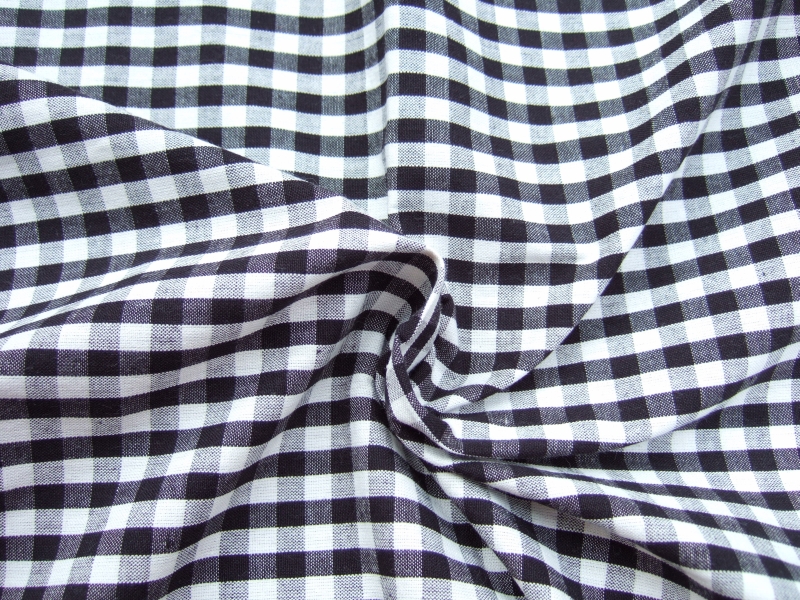 Klasické černé káro v šíři 110 cm. Ručně tkaná látka na tradičních dřevěných stavech v Indii s typickou nepravidelností a občasnými chybkami.