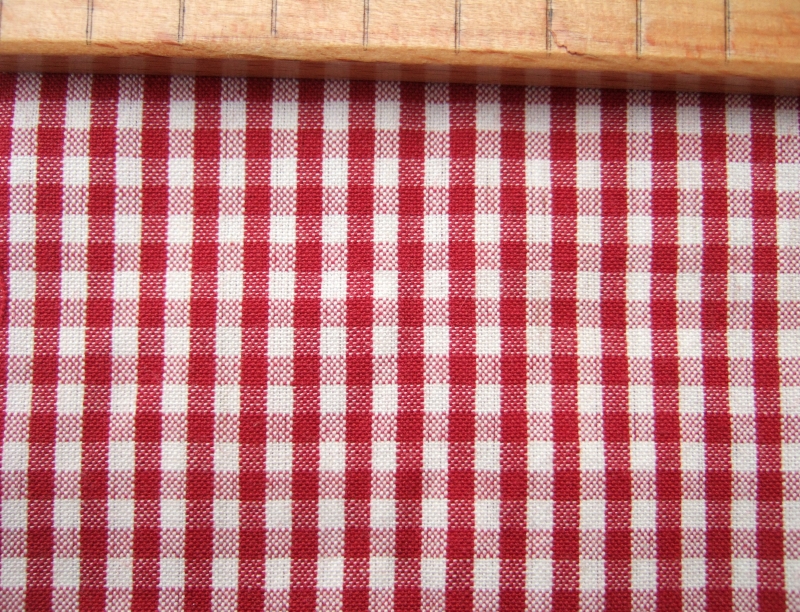Klasické červené káro v šíři 120 cm. Ručně tkaná látka na tradičních dřevěných stavech v Indii s typickou nepravidelností a občasnými chybkami.
